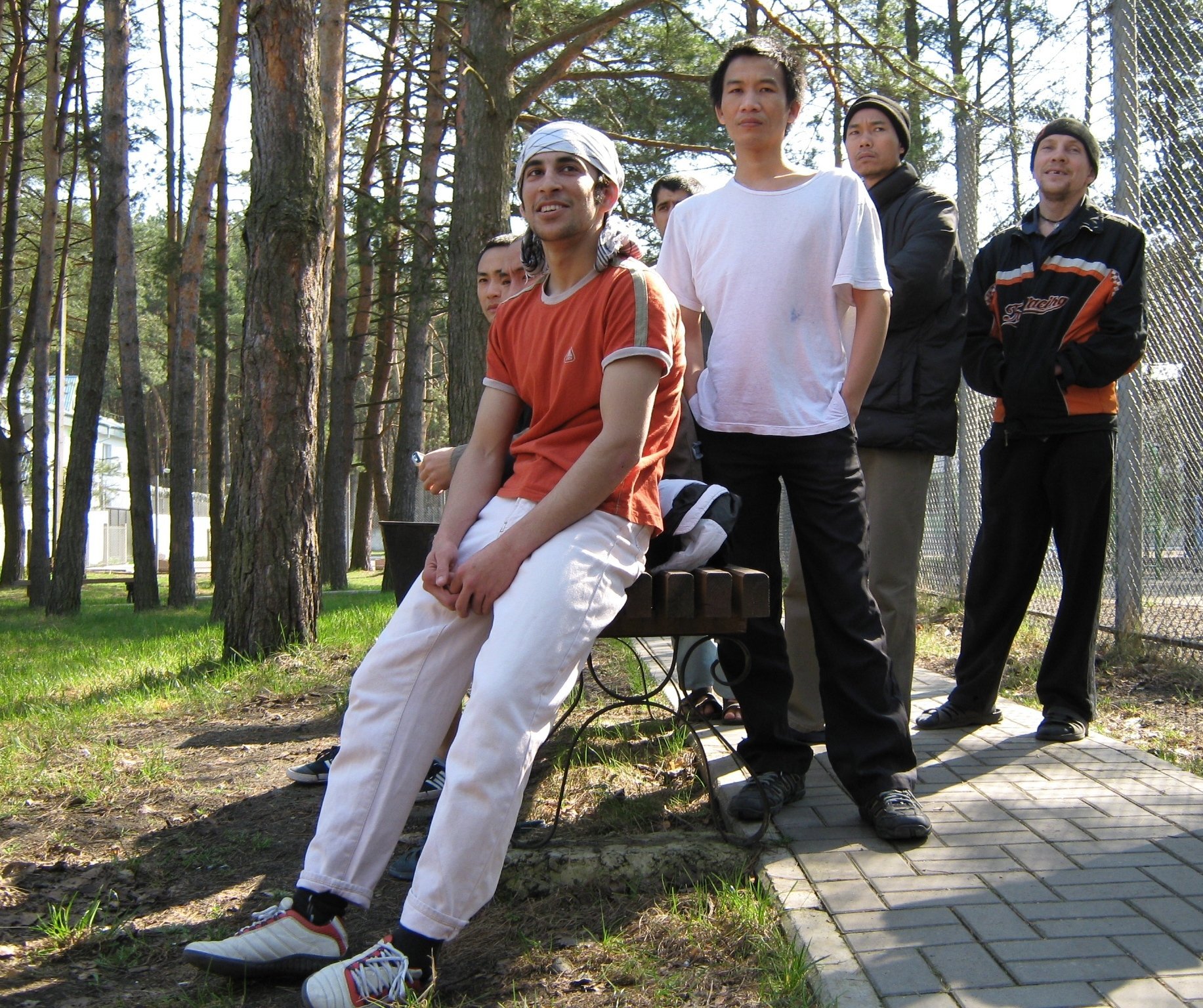 Нелегалів застали на футбольному майданчику. Веселі, розпашілі, жартують і позують для журналістів.