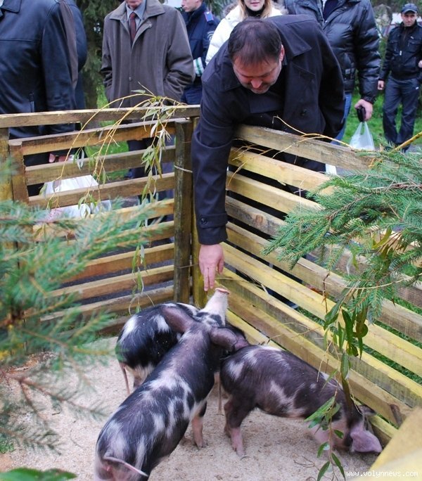Голова Волинської спілки захисту прав споживачів Геннадій Кожевніков прикупив на сальному святі кілька дерев’яних гребінців. Біля свиней намагався їх почухати. Деякі господарі кажуть, що чим частіше чухати свиню за вухом – тим швидше вона росте.