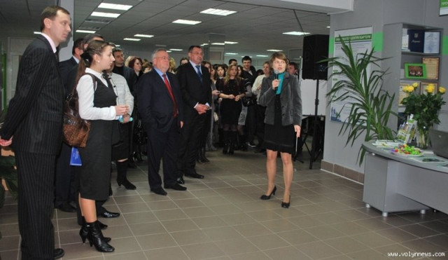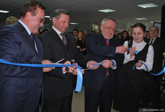 Стрічку перерізали голова облдержадміністрації Борис Клімчук, голова студради університету Яна Цапук, мер Луцька Микола Романюк та директор обласного центру зайнятості Раїса Кучмук.