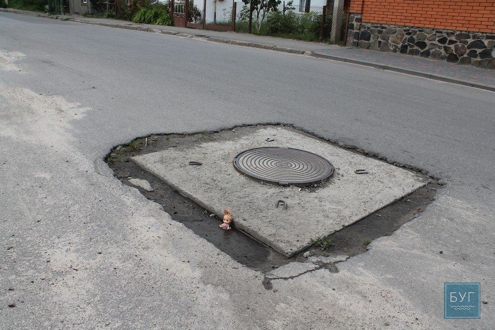 Не приведені в потрібний стан каналізаційні люки, які створюють небезпеку для автомобілів. Також не облаштовані стоки води біля тротуару.
