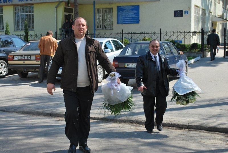На подію під’їхали на сріблястій "Шкоді" заступник голови ОДА Святослав Кравчук та нардеп-регіонал Анатолій Горбатюк на "Сузукі".