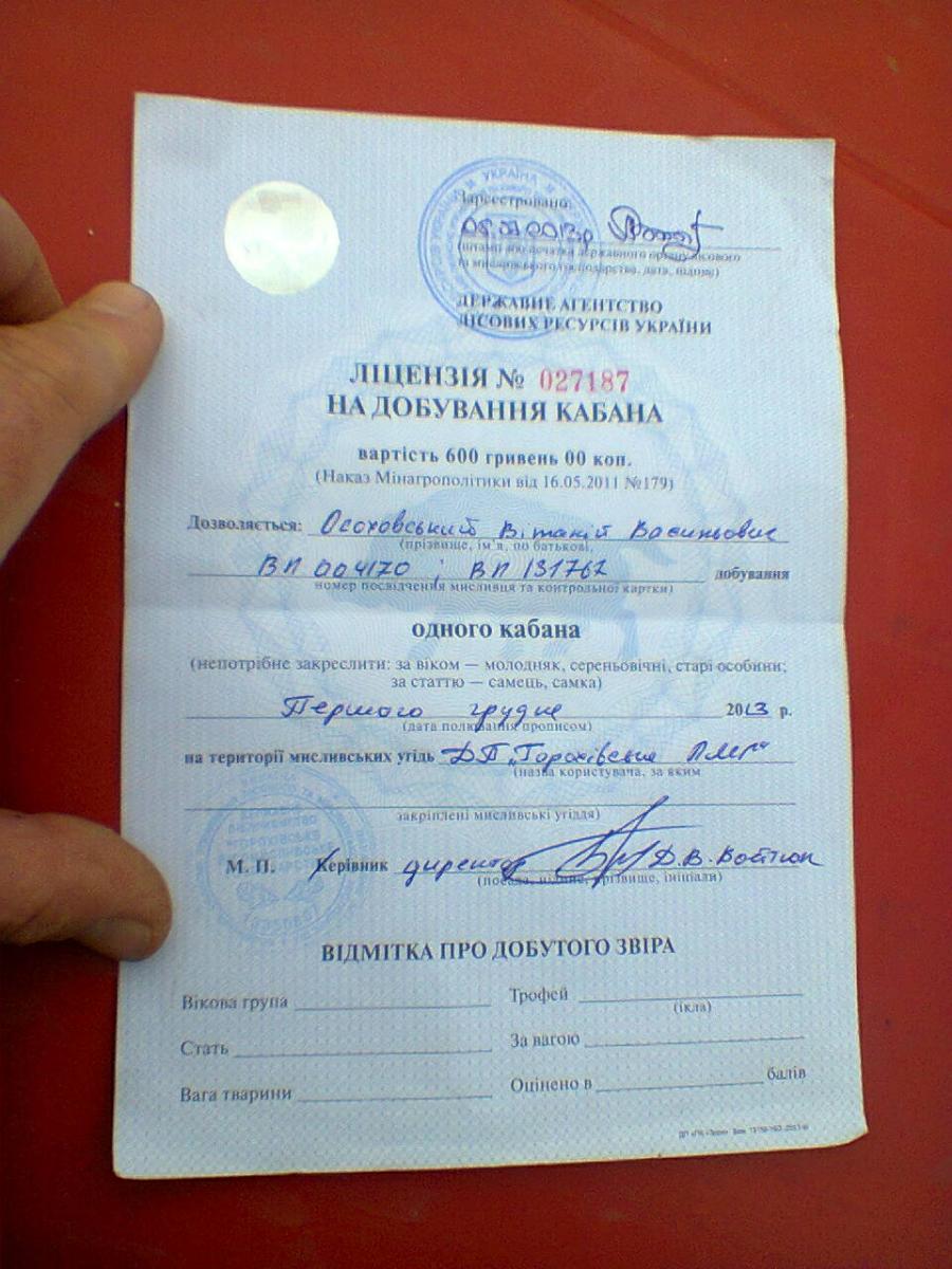 До слова, цього ж дня Віталій Жабчук натрапив у лісі на не менш цікаві факти, які стосуються того ж Віталія Андрійчука. «Коли я обходив рубку, знайшов щоденник єгеря, того, хто виконував тут роботу, Андрійчука Віталія. Якраз у той момент проходило полювання, але я знав що полювання проводиться в Горохівському лісництві і мисливці мають дозвіл на добування кабана. Коли я підійшов до групи мисливців, побачив збоку вбиту козулю. Чи знаєте ви, ким на сьогодні є пан Андрійчук? Мені по-народному сказали, що ніби то його вже поставили на посаду старшого по пеньках Горохівського району. Що це означає? Контролювати, щоб ніхто не зрізав дерев крім нього», – повідомив Віталій Феодосійович.