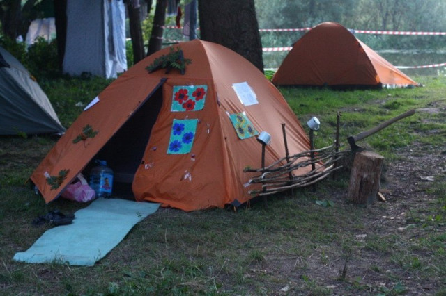Жили таборяни в наметах, молилися в похідній церкві, їли з багаття, купалися в річці Стир.