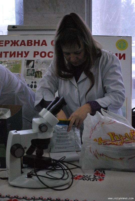 Мікроскоп із собою привезла Державна інспекція з карантину рослин по Волинській області. Як розповів начальник інспекції Василь Максимюк, Волинь є прикордонною областю. А тому з-за кордону на Волинь модуть потрапляти нові шкідники.