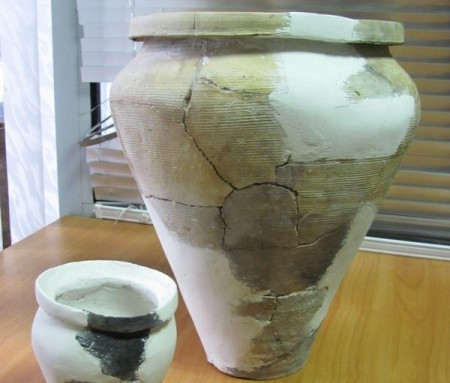 Більша посудина, діаметр якої – 26 сантиметрів, а висота – 31 сантиметр, очевидно, призначалася для зберігання їжі, найімовірніше, каші.