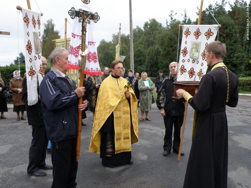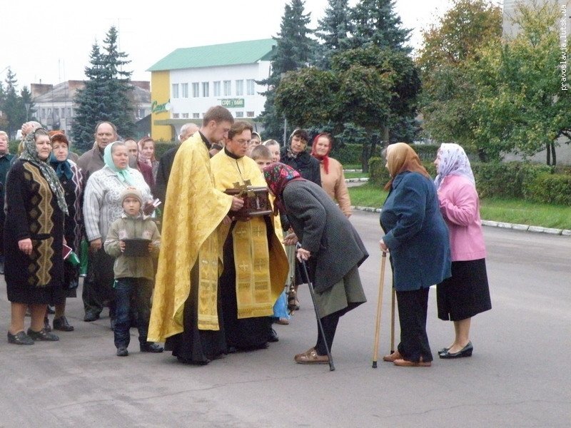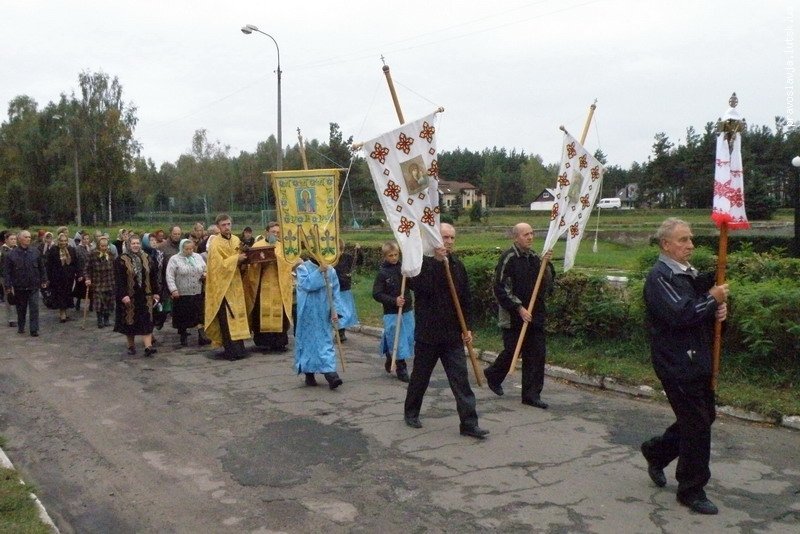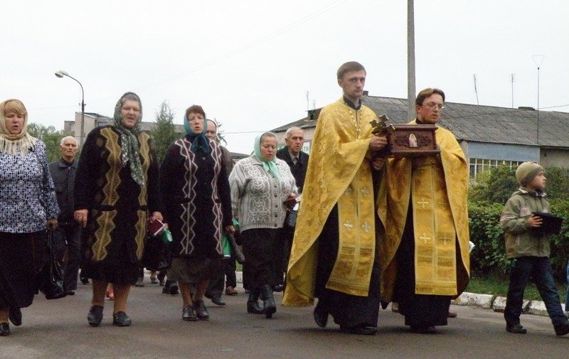 29 вересня мощі на околиці селища зустріли селища миряни на чолі з деканом протоієреєм Андрієм Закидальським. Священики пронесли реліквію хресним ходом до Троїцької каплиці, де відправили вечірню з акафістом святому.