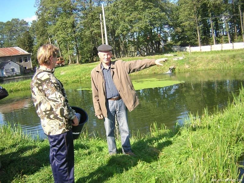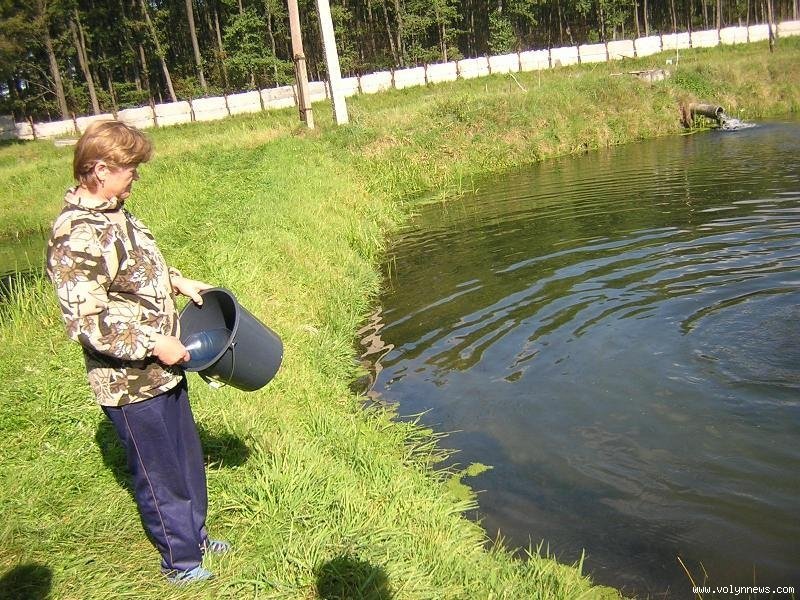 Ця вода і взимку, і влітку однакової температури – 8 з половиною градусів. Хоча коли дуже холодна зима або дуже жарке літо, як цього року, то температура води відповідно опускається до +5 градусів або піднімається до 15 градусів. Такий температурний діапазон якраз оптимальний для вирощування форелі. За таких умов вона найкраще засвоює корм і розмножується, каже завідувач дільниці «Оконськ» ВАТ «Волиньрибгосп» В'ячеслав Шандрук, стаж роботи якого на дільниці найдовший серед усіх праціdників – 39 років.