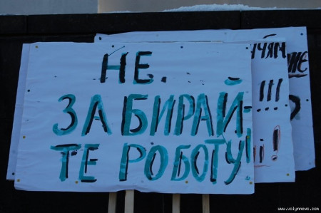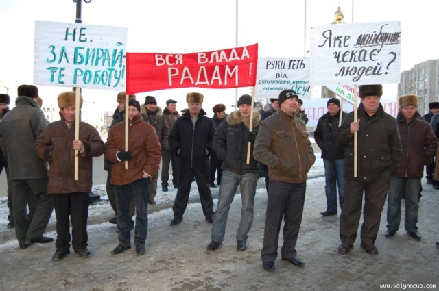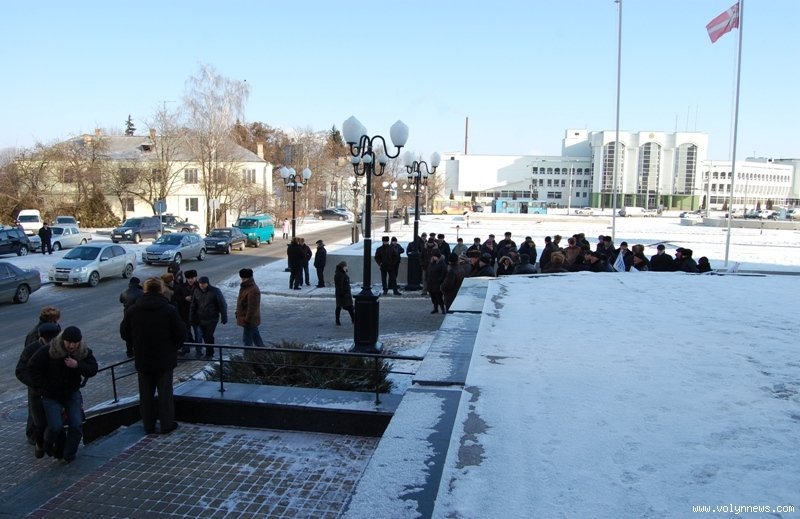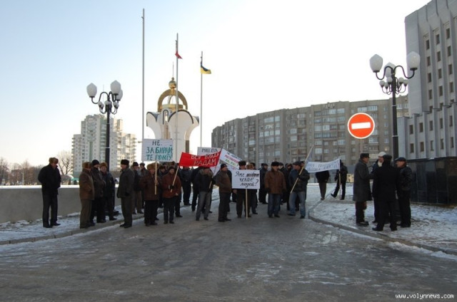 Близько 30 працівників лісгоспів «Маневичіліс» та «Ківерціліс» влаштували під стінами Волинської облдержадміністрації пікет – лісівники проти передачі їхніх комунальних лісів до державної власності.