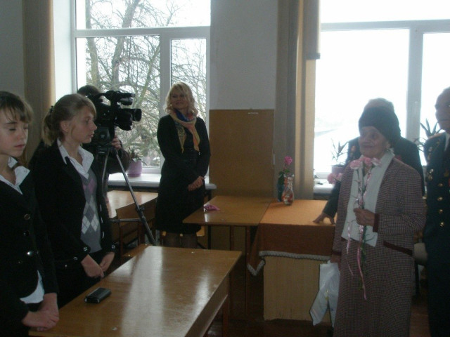 Ще місяць назад шкільний музей потребував ремонту, особливо стелі. До Олени Голєвої звернулися батьки учнів за допомогою. Відразу, на наступний день вона допомогла школі, перерахувавши п’ять тисяч гривень на ремонт. І сьогодні у відремонтованому «Музеї бойової слави», відбувся святковий захід.