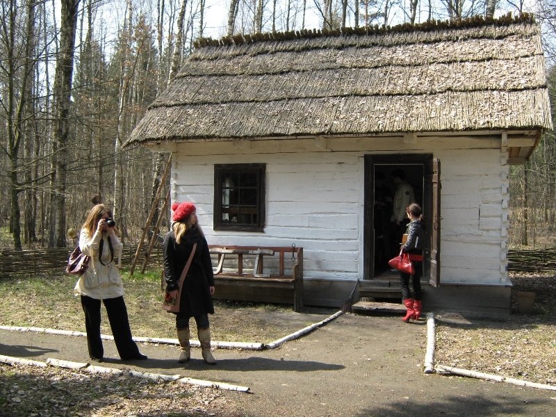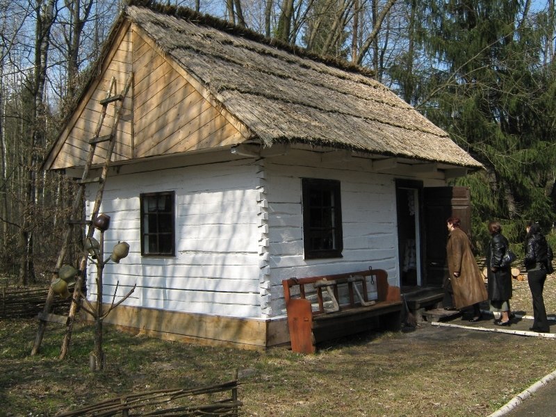 Дерев’яна хатина із солом’яним дахом відтворює тогочасну атмосферу сільської архітектури та ужиткового побуту. В реконструйованій оселі – давня піч, старовинні праска, глечики та чугунці. На столі – столітня вишита скатертина, ліжко встелене витканим простирадлом.