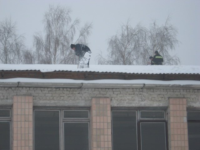 На будівлі було майже півметра снігу, що загрожував зруйнувати шатровий дах своєю вагою. І директор навчального закладу звернувся за допомогою до служби «101».
