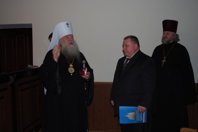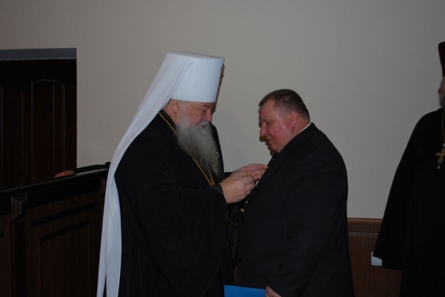 Митрополит Луцький і Волинський Ніфонт від імені предстоятеля Української православної церкви, Митрополита Київського і всієї України блаженнішого Володимира вручив прокурору області Андрію Гілю орден Почаївської ікони Божої Матері.