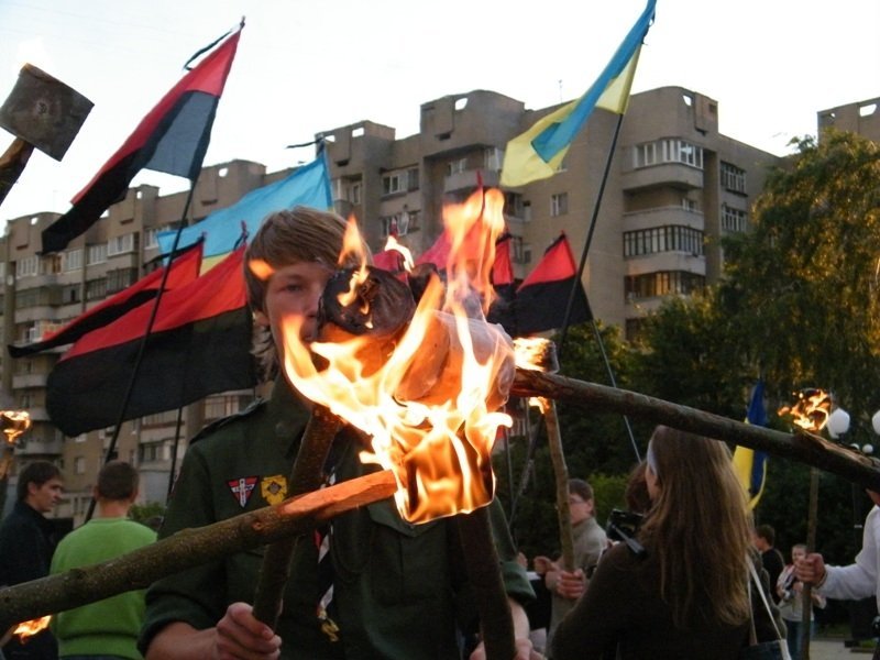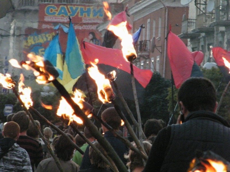 Кожен учасник ходи ніс смолоскип - настромлений на загострений кілок туалетний папір у напалмі, тобто, милі з керосином. Крокуючи, шеренги скандували: «Герої не вмирають – героям вічна слава!», «ОУН-УПА – державне визнання!», «Слава Україні – героям слава!», «Україна – понад усе!»