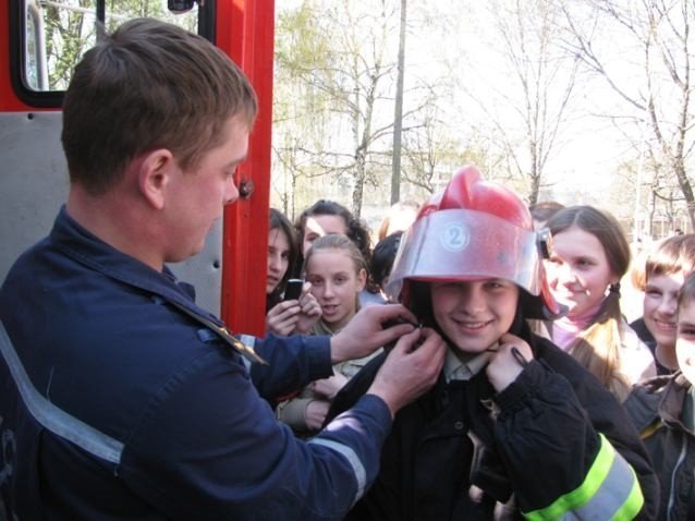 Рятувальники дозволяють дітям приміряти каску пожежного. ФОТО