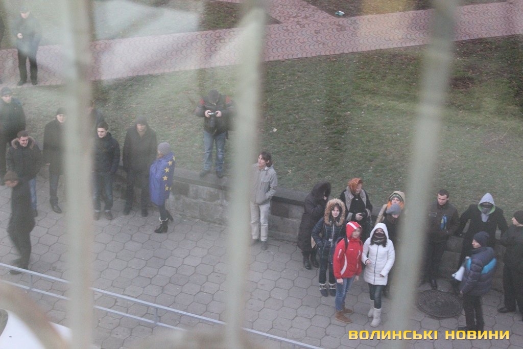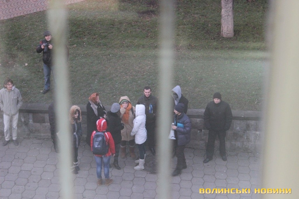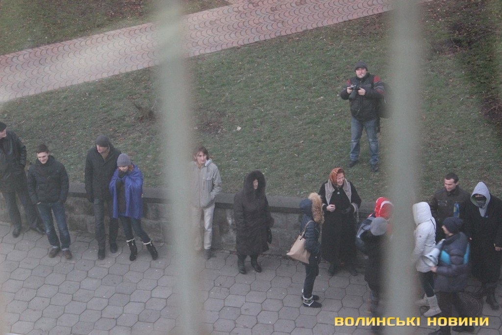 Засідання розпочалося о 15.30. Під приміщення Луцького міськрайонного суду, що на вулиці Лесі Українки, зібралося понад десяток мітингувальників. Вони співали Гімн України, "Волинь моя" й інші пісні та вигукували: «Суддя згадай присягу», «Свобода політв’язням».