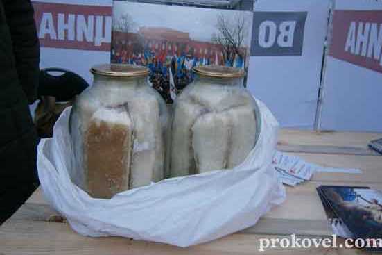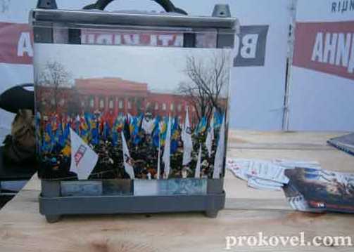 В палатках, що стоять ось уже кілька днів поспіль на центральній площі Ковеля, знаходяться скрині для збору коштів мітингуючим у Києві. Зі слів тих жіночок, що тут чергують, перехожі опускають у скриню хто скільки може: п’ять, двадцять, а то й 50 гривень, сто гривень. А нещодавно один чоловік пожертвував аж тисячу доларів. Очевидці стверджують, що незнайомець опускав у скриню по сто доларів.
