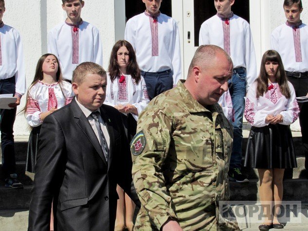 Право відкрити меморіальну дошку надали майстру виробничого навчання у ліцеї – Петру Гараху та випускнику ліцею, учаснику АТО – Олексанру Ковальчуку.