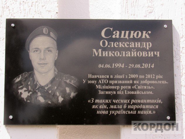 Раніше Інформаційне агентство Волинські Новини повідомляло, що пам’ятну дошку встановили в Куснищанській школи, де навчався Олександр Сацюк. Дошку безкоштовно виготовив майстер Дмитро Оксентюк зі Згоран Любомльського району.