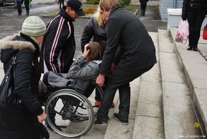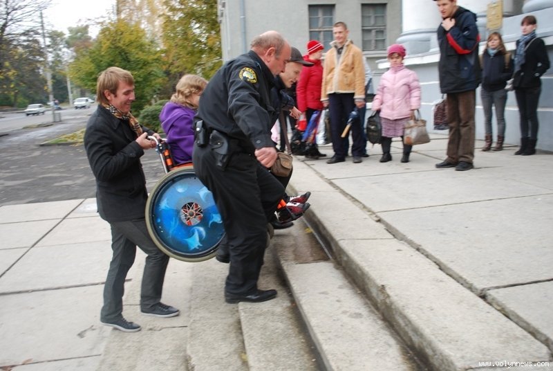 У приміщення Волинського краєзнавчого музею немає пандуса для підйому візків. Через це інвалідам важко відвідувати музей.