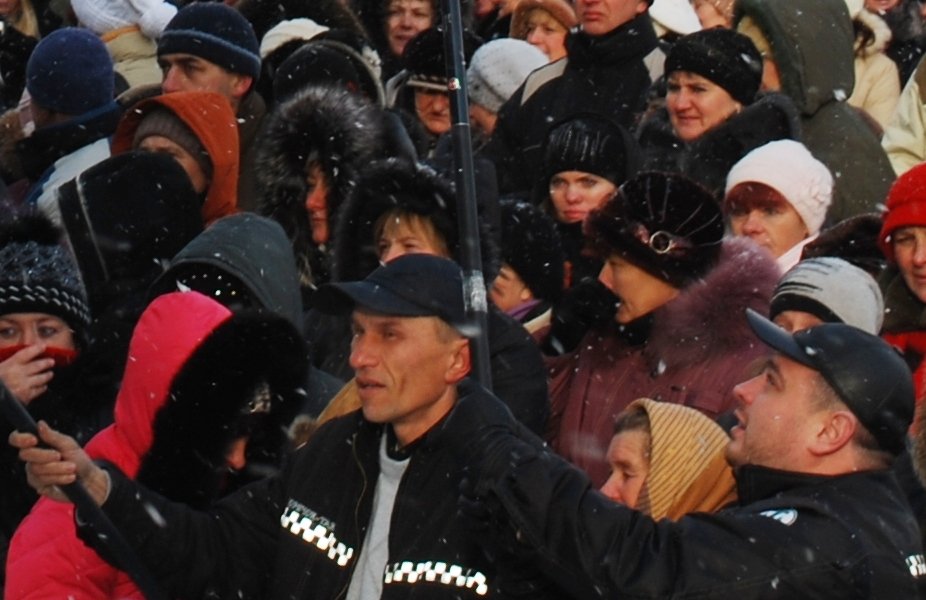 У розпорядженні учасників мітингу - два мікрофони. Один знаходиться на сцені. Другий - у натовпі. Таким чином протестуючі обмінюються інформацією.
