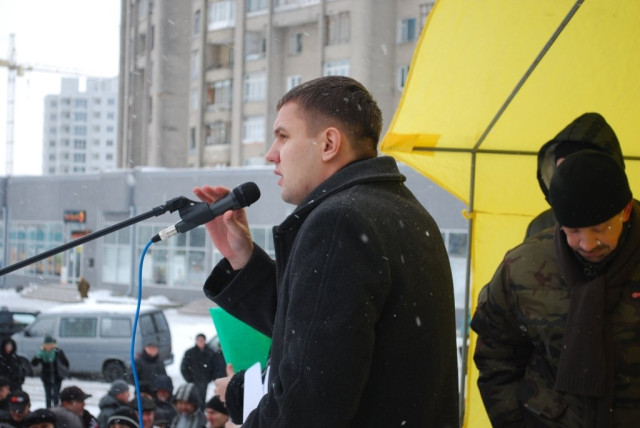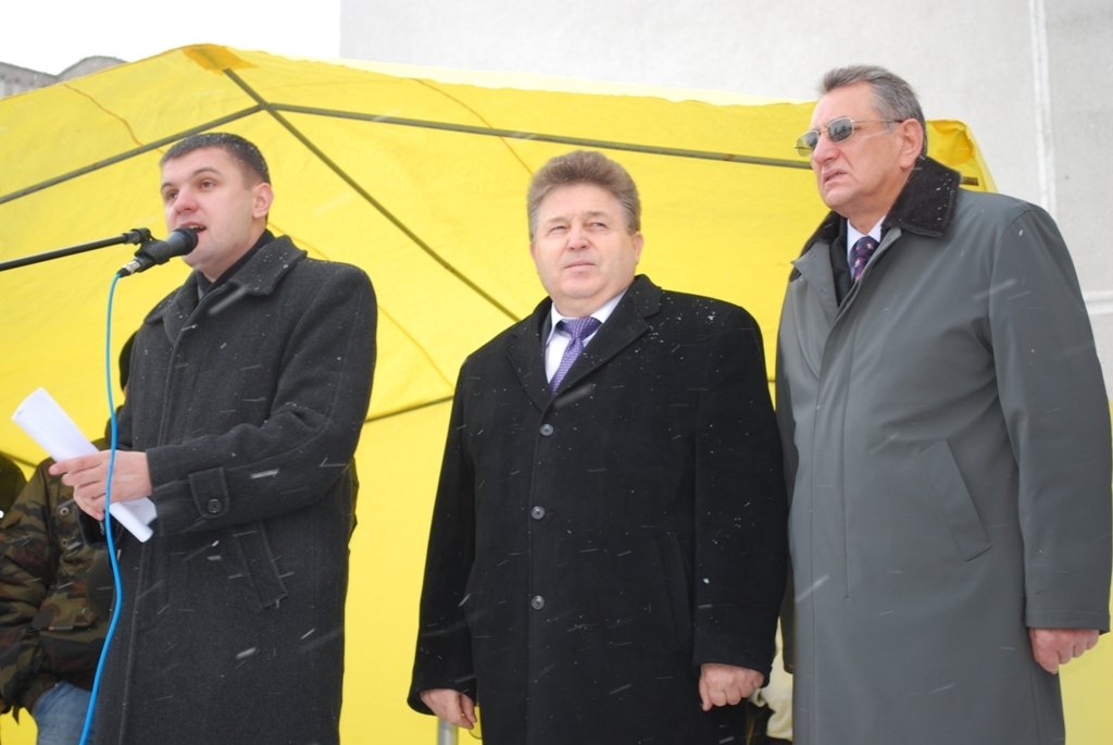 Башкаленко хотів теж виступити, але Гузь не дав йому мікрофона. Очільник "За Україну!" на Волині звернувся до мітингуючих із пропозицією не давати слова депутату Башкаленку, яку учасники акції охоче підтримали вигуками.