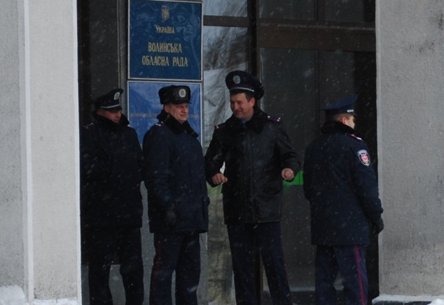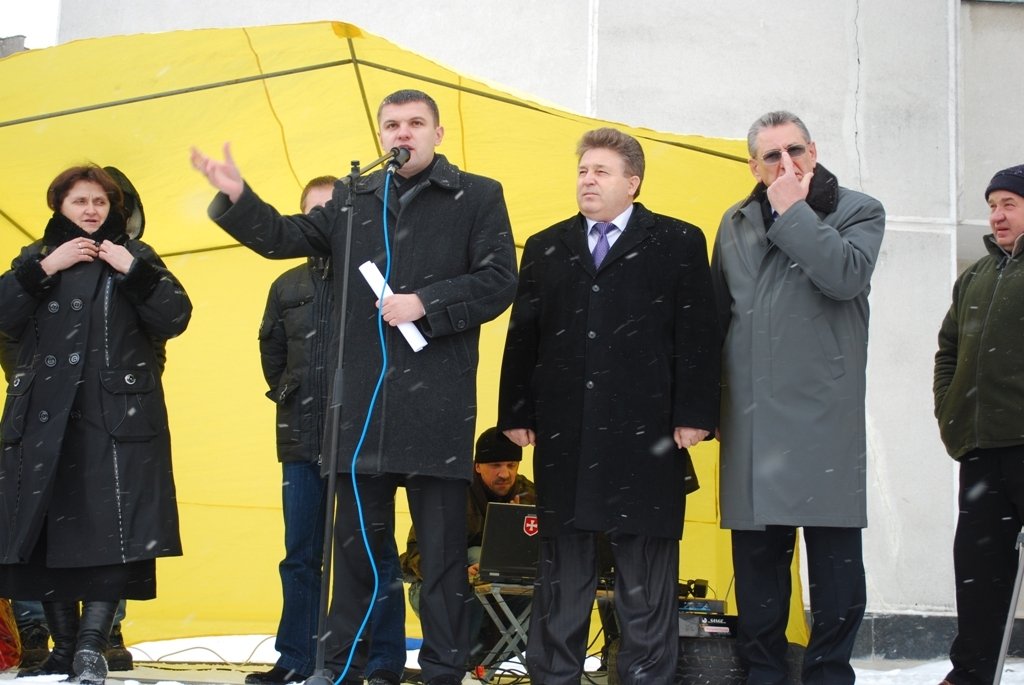 До мітингуючи вийшов заступник голови облдержадміністрації Едуард Стоєв і запропонував, аби декілька людей-учасників акції, які мають на меті потрапити на сесію, зайшли до нього в кабінет і почекали, поки їх викличуть.