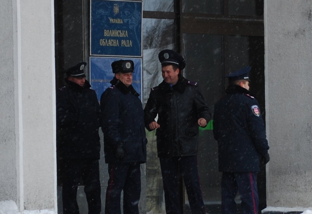 До протестуючих вийшли депутати обласної ради Ігор Гузь, Анатолій Грицюк, Євген Мельник, Олександр Башкаленко та депутат Луцької міської ради Андрій Козюра.