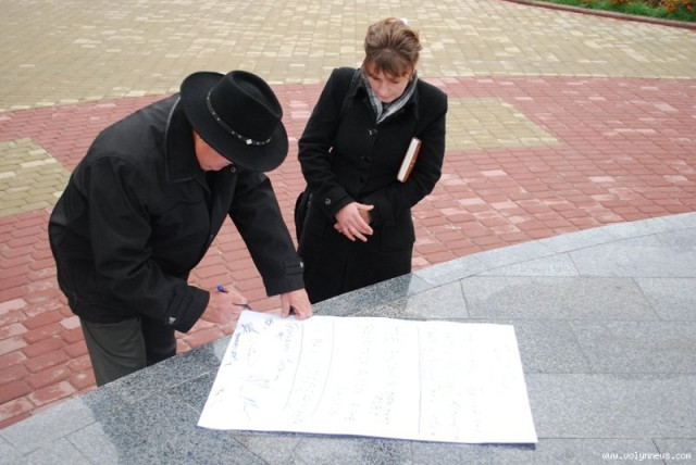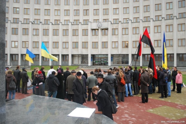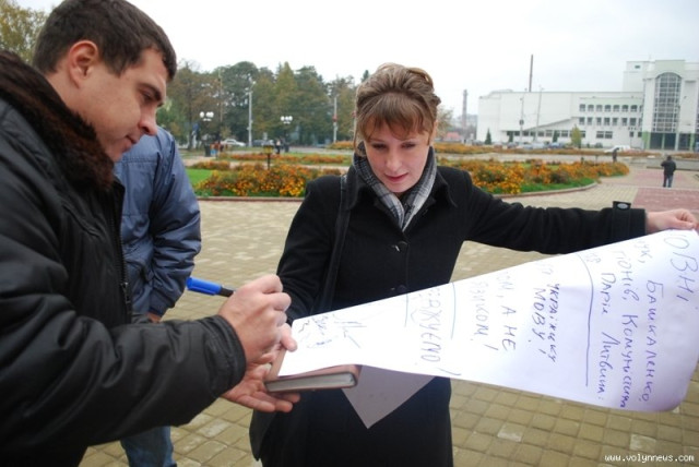 Проскандувавши гасла, учасники акції спрямували своє звернення голові ОДА Борису Клімчуку з вимогою дати відповідь чи підтримує він політику влади у мовному питанні, з огляду на те, що більшість населення Волині є україномовним. Однак до мітингувальників жоден чиновник так і не вийшов.