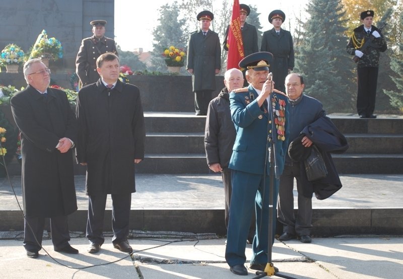 Під час мітингу взяв слово і голова Волинської ОДА Борис Клімчук, який дякував ветеранам, «яких кожного разу сюди приходить все менше» за подароване ними «мирне небо над головою».