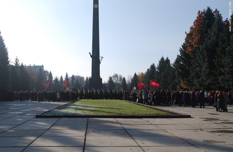 З нагоди відзначення 66-ї річниці визволення України від німецько-фашистських загарбників на Меморіалі пам’яті в Луцьку зібралось декілька сотень людей, аби віддати шану загиблим під час Другої світової війни.