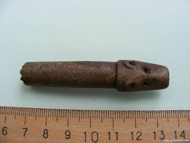 «Достеменно не можемо сказати, для чого був призначений цей виріб. Із рога вирізьблена зооморфна голова чи то вовка, чи то дракона. З іншого боку ріг шліфований. Тож можливо це була накладка, прикраса до чогось. Крім голови звіра, ріг орнаментований трикутниками», - розповів керівник Шацької експедиції Сергій Демедюк.