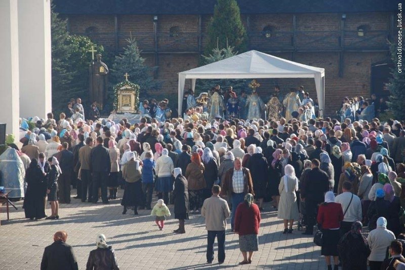 Керуючий Волинською єпархією митрополит Луцький і Волинський Ніфонт відправив Божественну літургію на площі поряд із Свято-Успенським храмом монастиря. Йому співслужили вісім архієреїв, духовенство Володимир-Волинської та Волинської єпархій, повідомили у Волинській єпархії УПЦ.