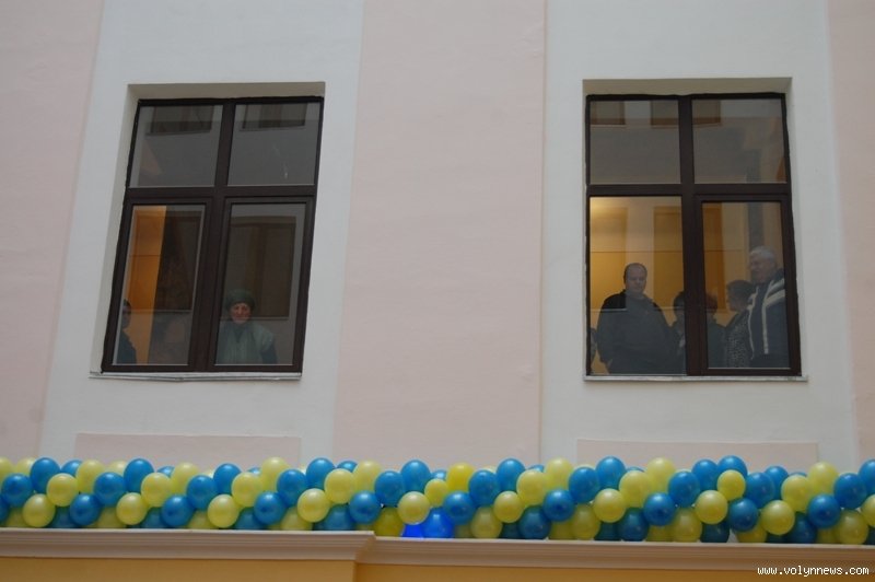 Після офіційного відкриття поважним гостям та пресі провели оглядини нового корпусу, який до відкриття щедро прикрасили синьо-жовтими кульками та новорічною атрибутикою.