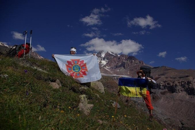 Волинські альпіністи розгорнули стяг України на вершині Кавказу. ФОТО