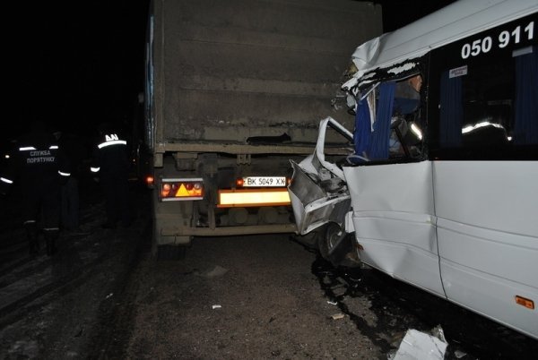 На сайті УНН йдеться, що водій мікроавтобусу, який перевозив 9 гравців баскетбольної команди з Луцька, не витримавши безпечної відстані допустив зіткнення з вантажним автомобілем МАН.
