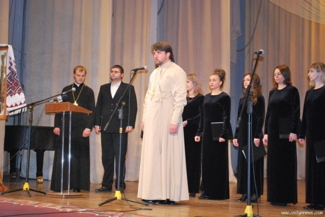 Настоятель храму Холмської ікони Божої Матері митрофорний протоієрей отець Михаїл та хор цієї церкви привітали глядачів з ювілейною академією.