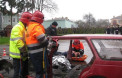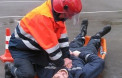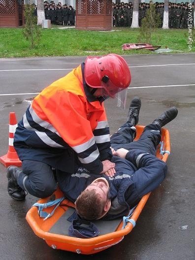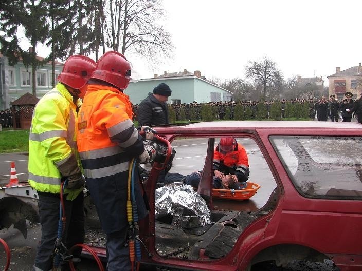 Бійці МНС за допомогою засобів малої механізації оперативно здійснили демонтаж пошкоджених елементів транспортного засобу й визволили умовного потерпілого, надали йому першу долікарську допомогу, здійснивши закритий масаж серця та інші реанімаційні заходи, а тоді помістили людину на ноші й передали до рук медиків.