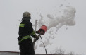 Далі дійство перемістилося до місця ліквідації умовної пожежі. Команда рятувальників, розгорнувши спеціальну техніку та обладнання, дісталися триколінною драбиною до даху будівлі, де начебто виникла пожежа, та подали піну на її гасіння.