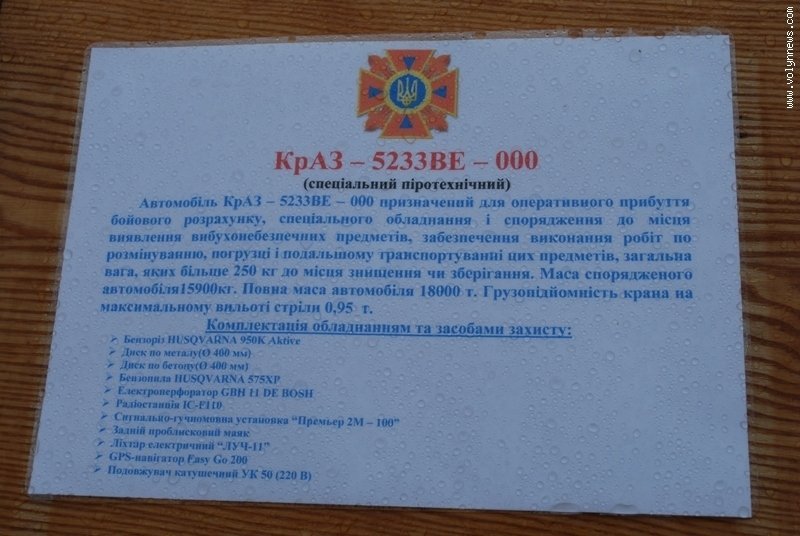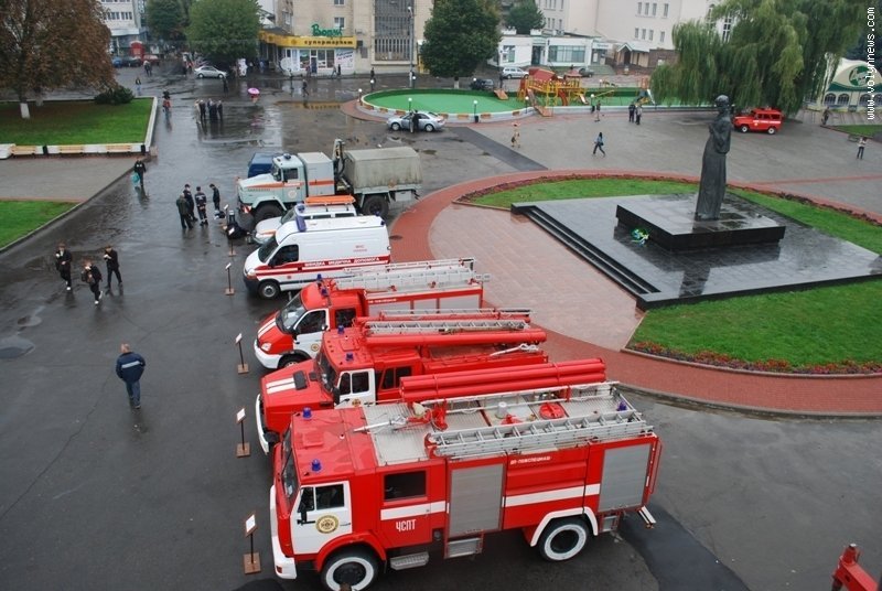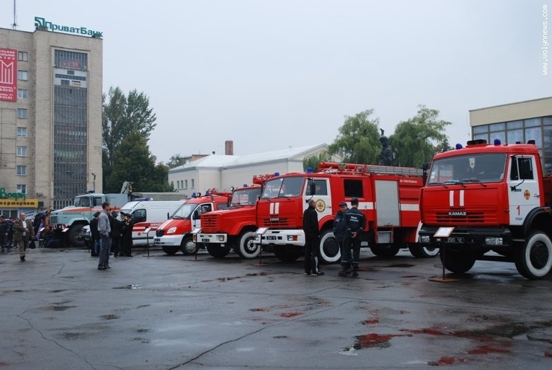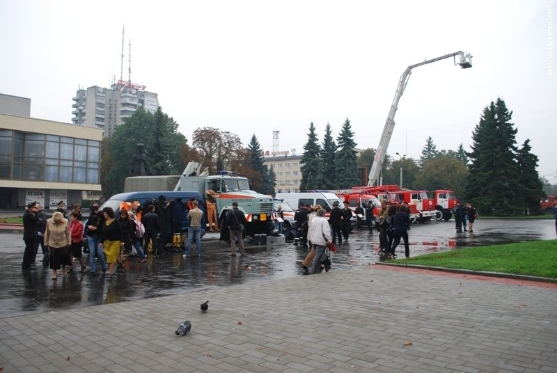 Виставка показової техніки та рятувального приладдя, яку організувало головне управління МНС України в області, тривала чотири годин. Перехожі мали змогу зблизька роздивитись аварійно-рятувальні машини, якими пожежники виїздять на ДТП, пожежну автоцистерну, автокран та підйомник, машини для операцій з розмінування та водолазно-пошукових робіт, сучасний автомобіль швидкої невідкладної допомоги.