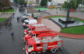«Ми виставили на огляд дев’ять зразків нашої нової техніки, отриманої протягом останніх двох-трьох років. Ця вся техніка, незважаючи на святкування, знаходиться у повній готовності до надзвичайних подій, оскільки перебуває на чергуванні. І якщо такий виклик тапився б, то деякі машини негайно відбули б на місце пригоди», – пояснив помічник начальника ГУ МНС Володимир Нестеров.