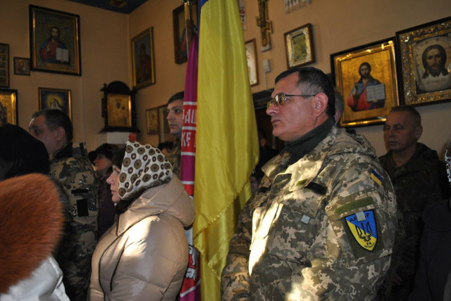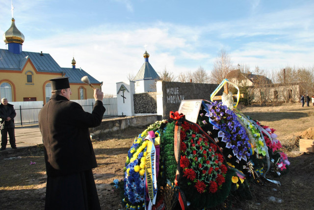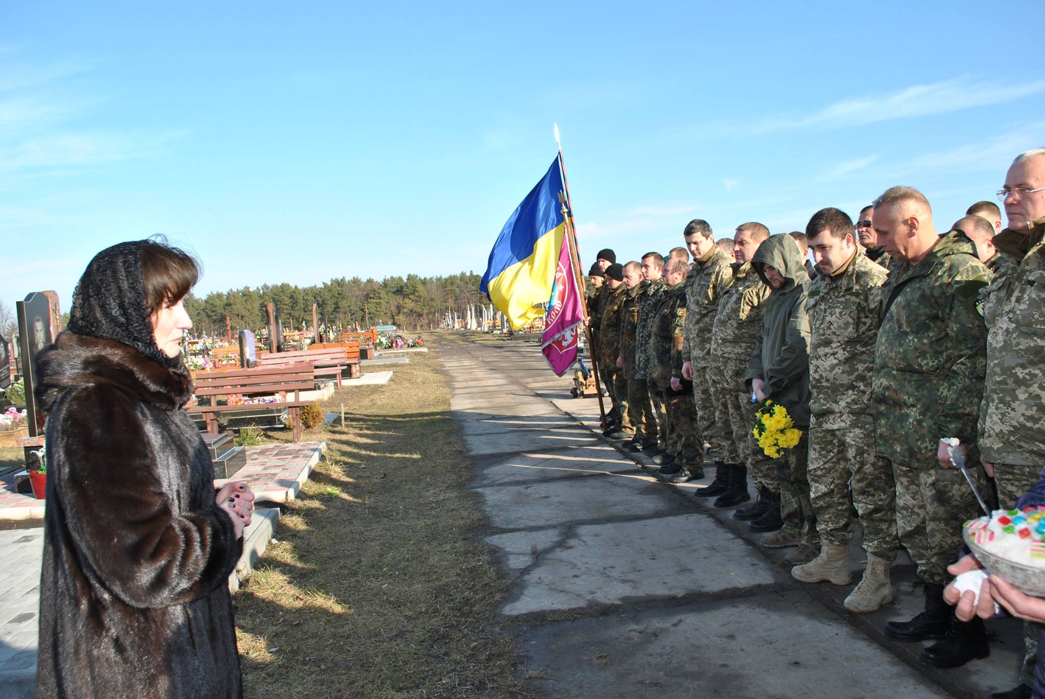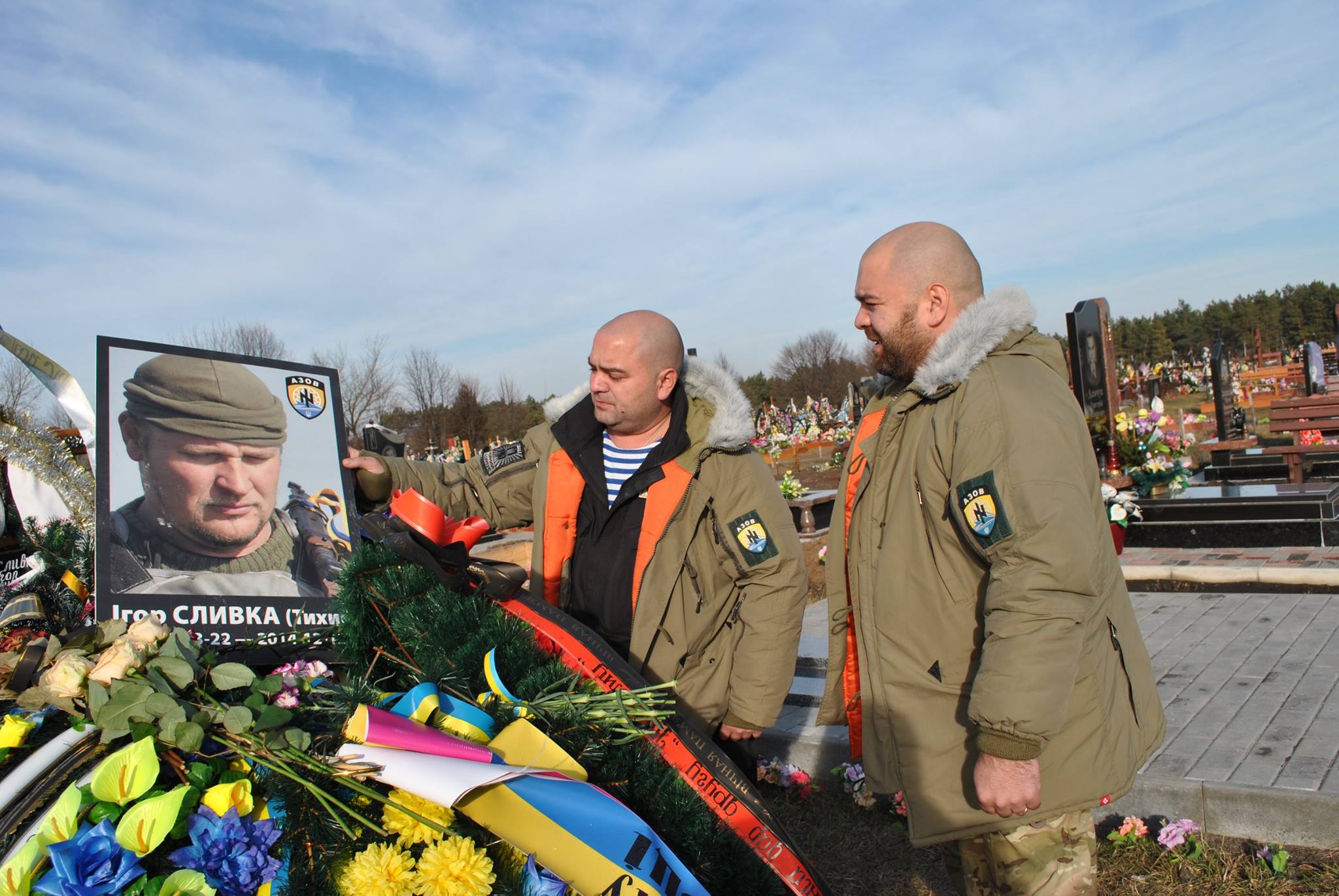 На фото: бійці батальйону «Азов» на могилі Ігоря Сливки 17 січня