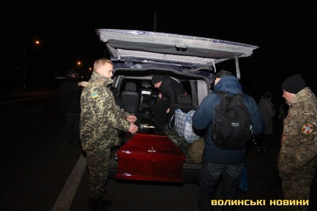 Автівку із тілом загиблого громадські активісти, зокрема ГО «Автомайдан України», «Самооборона Волині», а також волонтери, військовослужбовці та журналісти, зустріли в ніч на 28 листопада на «рівненському кільці». Опісля, близько 22:30, колона автомобілів із жалобними, чорними прапорами рушила до малої Батьківщини полеглого – селища Торчин, де на покійного чекали згорьована родина.