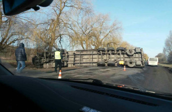 Вантажний тягач з причепом перевернувся в селі Голоби Ковельської району.