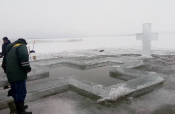 На Світязі для купання на Водохреще облаштували ополонку і вирізали хрест