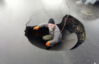 У Володимирі-Волинському провалилася дорога, утворилася величезна яма