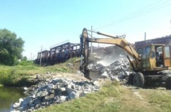 Залізничники зміцнюють берег Турії у Ковелі, аби запезбечити безпеку руху поїздів