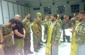 Священики Олександр Вронський, Андрій Мовчанюк та Іван Гуреєв – учасники ГО «Спілка військових капеланів Волині» – відвідали тилову базу 4-тої роти «Січ» полку «Київ»