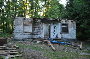 Від двохповерхового будинка на острові, що знаходиться посеред озера Світязь, наразі залишився лише перший поверх. Решту - демонтували. У планах - розібрати його повністю.