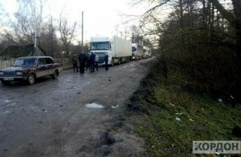 На Любомльщині перекрили дорогу вантажівкам, що об’їжджають селами чергу на «Ягодин»