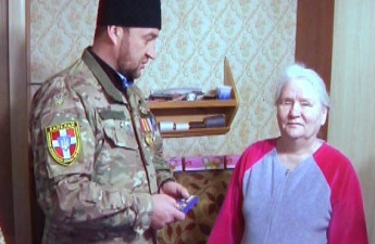 Незрячій в’язальниці рукавиць із Луцька Валентині Мазурик волинські капелани вручили орден Матері бійця АТО